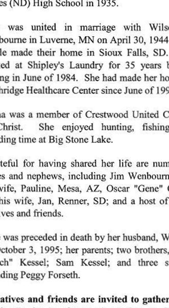 Page about Edna Kessel Wenbourne